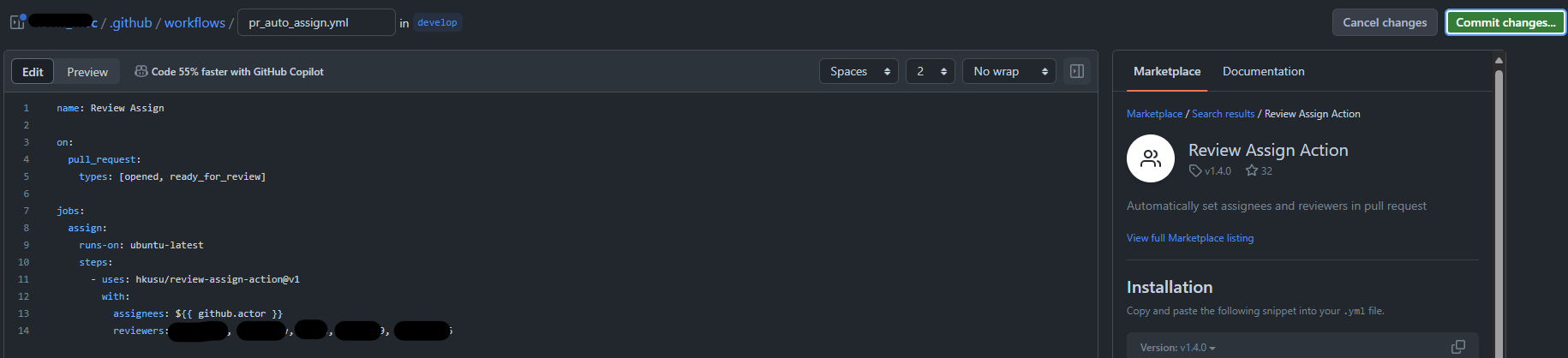 - reviewers : 리뷰어로 등록할 팀원들을 컴마로 구분하여 추가한다.