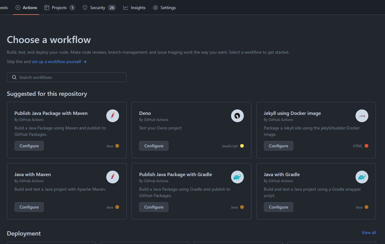 Repositories > Actions > set up a workflow yourself 이동